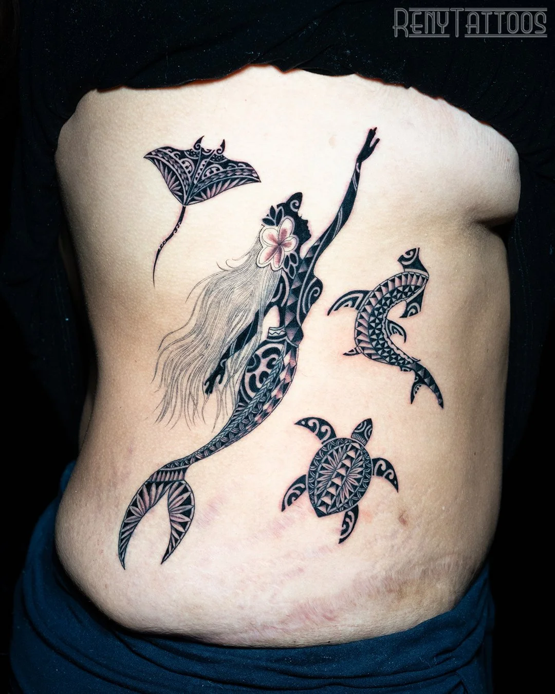 Tribal tattoos have long been valued for their strength, symbolism, and connection to the body. Reny’s tribal work draws inspiration from Polynesian and patterns found around the world in art, culture, and nature. Working closely with each client at her private Toronto tattoo studio, she creates fully custom designs that incorporate meaningful symbols and patterns while focusing on clean linework, flow, and thoughtful composition.